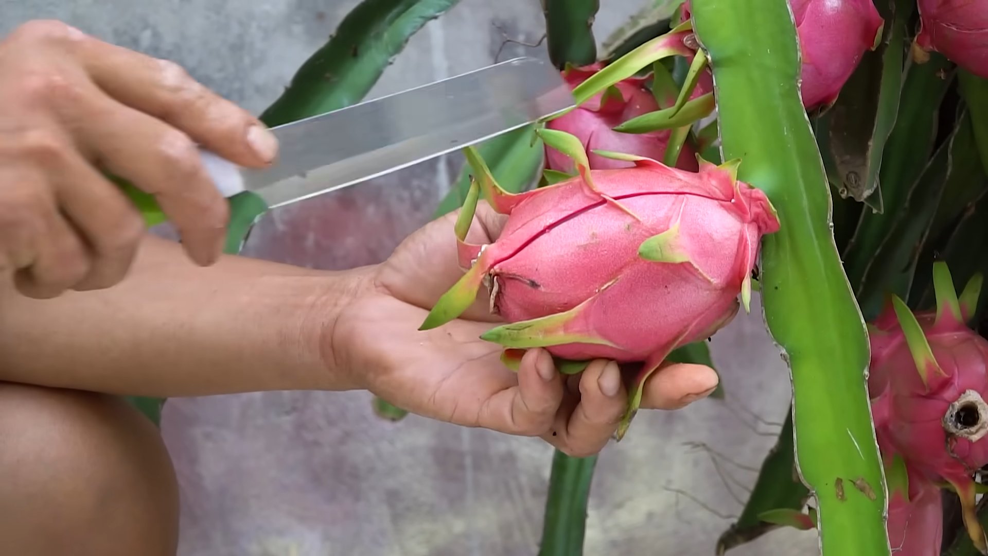 To harvest, simply twist the fruit off the stem. Enjoy your delicious, homegrown dragon fruit!