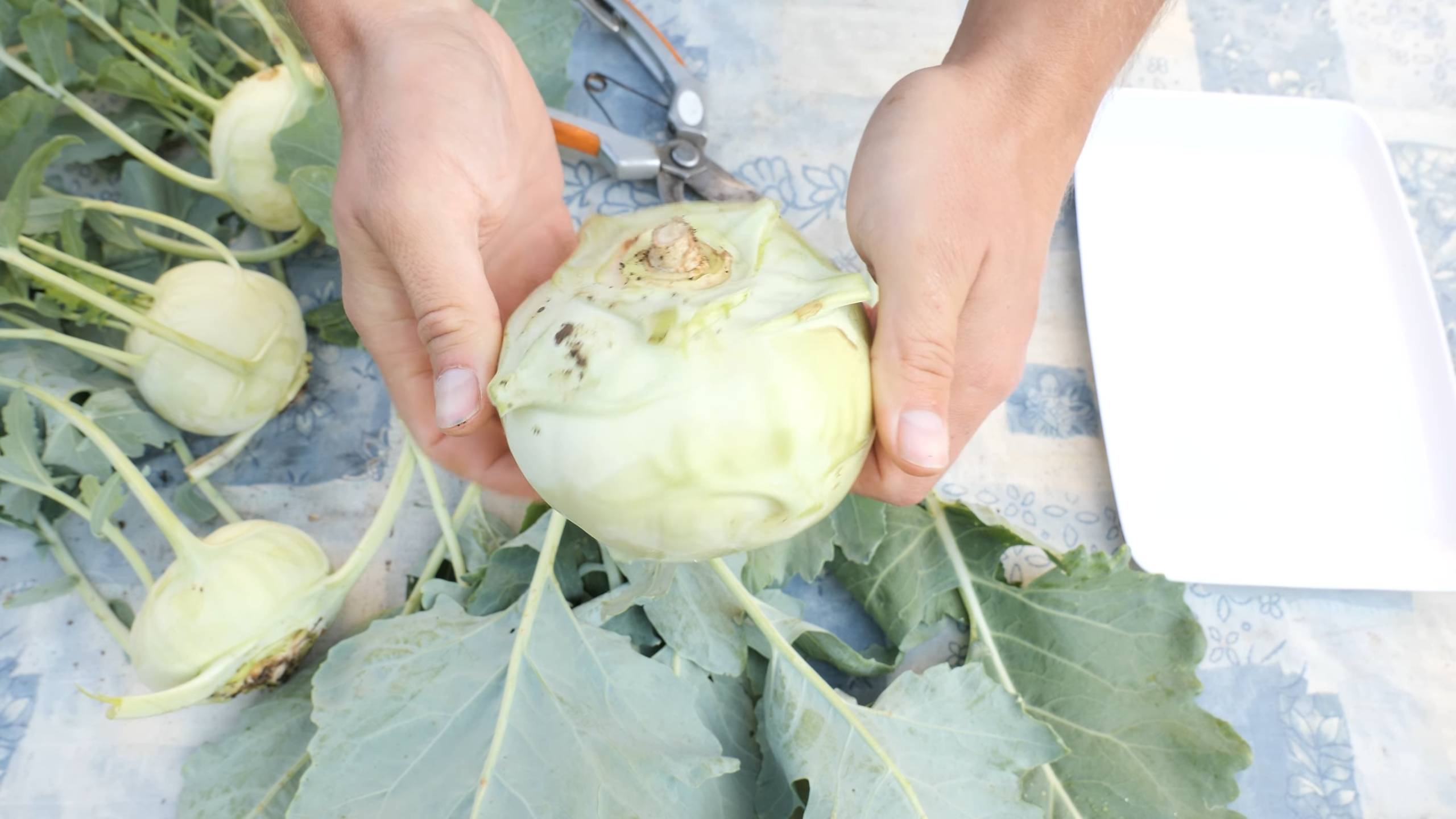 The best part! You can harvest kohlrabi when the bulbs are about 2-3 inches in diameter. Don’t let them get too large, as they can become woody and tough.